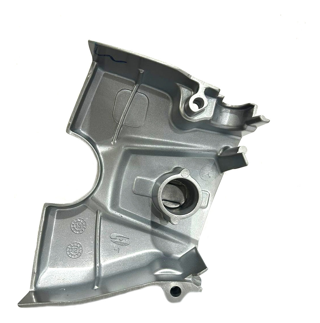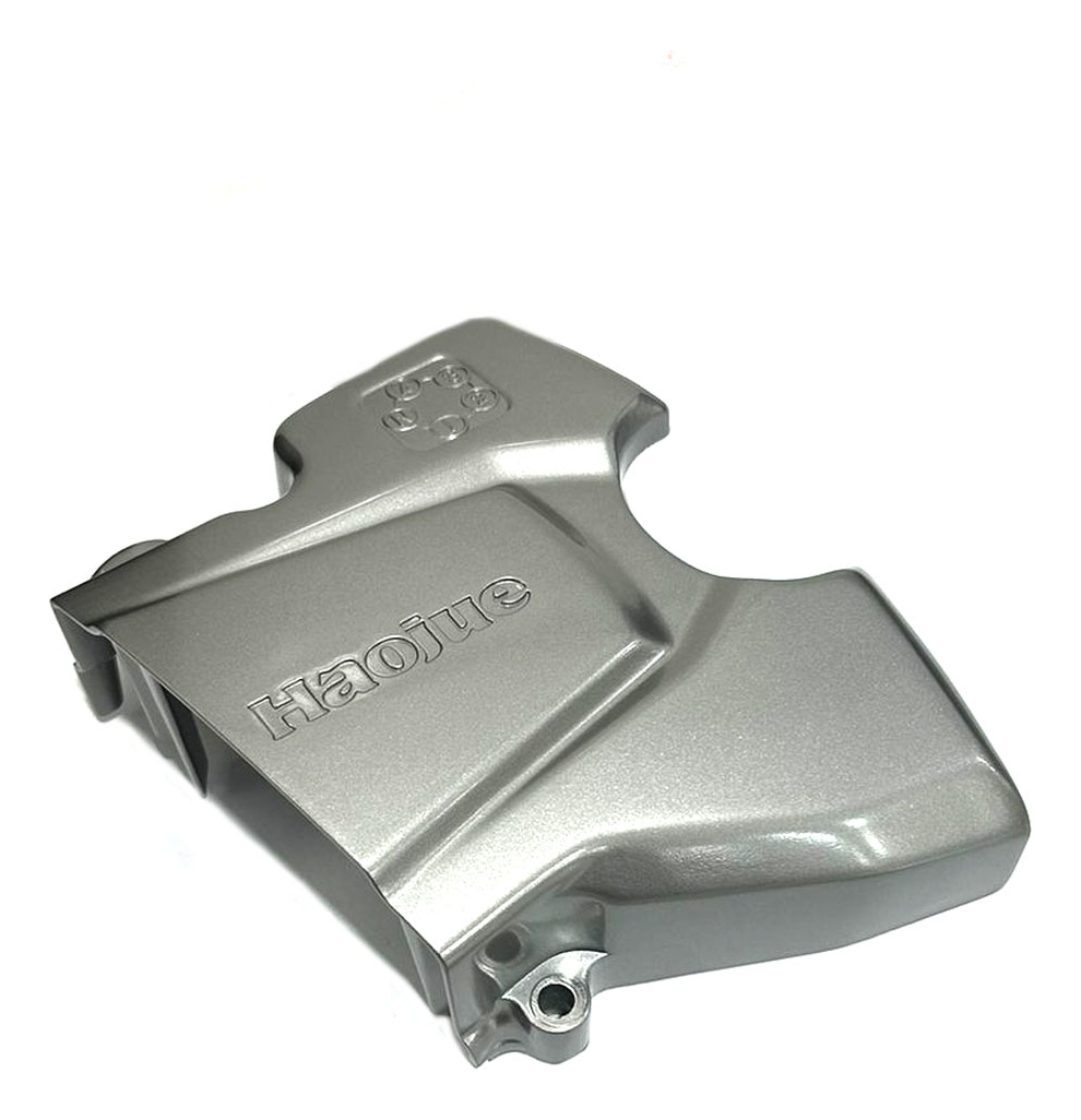 Aplicação: Tampa do pinhão do motor para motocicleta Haojue NEX110, utilizada para proteger o pinhão e componentes internos do motor contra sujeira e detritos, além de manter a lubrificação correta.